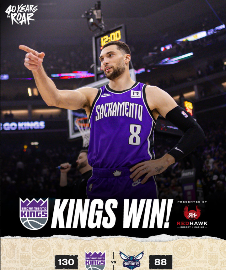 北京时间2月25日,NBA常规赛,萨克拉门托国王以130-88大胜夏洛特黄蜂,终结二连败。这场比赛从一开始就呈现一边倒的态势,国王首节领先11分,半场将分差扩大到20分,第三节结束时依然保持16分优势。末节仅打了5分钟,国王便换上全替补阵容,比赛彻底失去悬念。